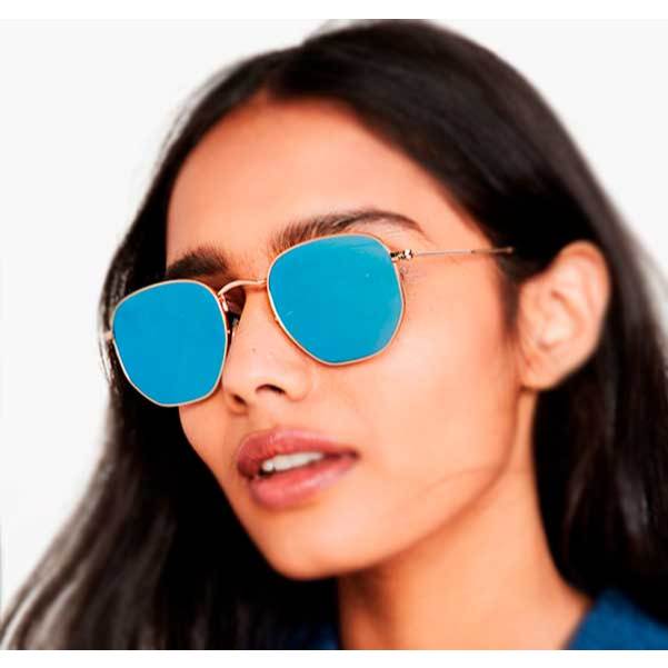 Oculos de sol Masculino hexagonal lente de cristal dourado Azul