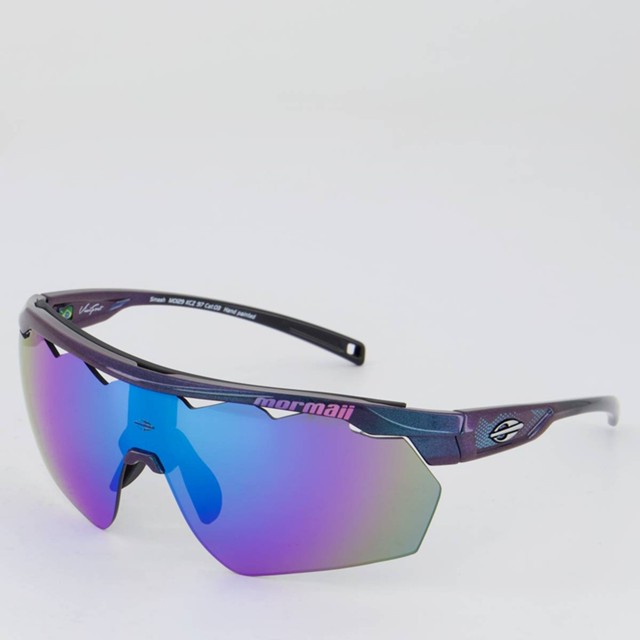 Contém: 01 óculos de sol, 01 flanela, 01 estojo rigído e 01 máscara recorte antiembaçante. Composição armação: Sintética Cor predominante armação: Azul Comprimento da haste: 13 cm Indicado para: Beach Tennis Cor da lente: Azul e roxo Largura frontal: 17 cm Peso aproximado: 30 g Origem: Nacional Gênero: Unissex Tamanho único