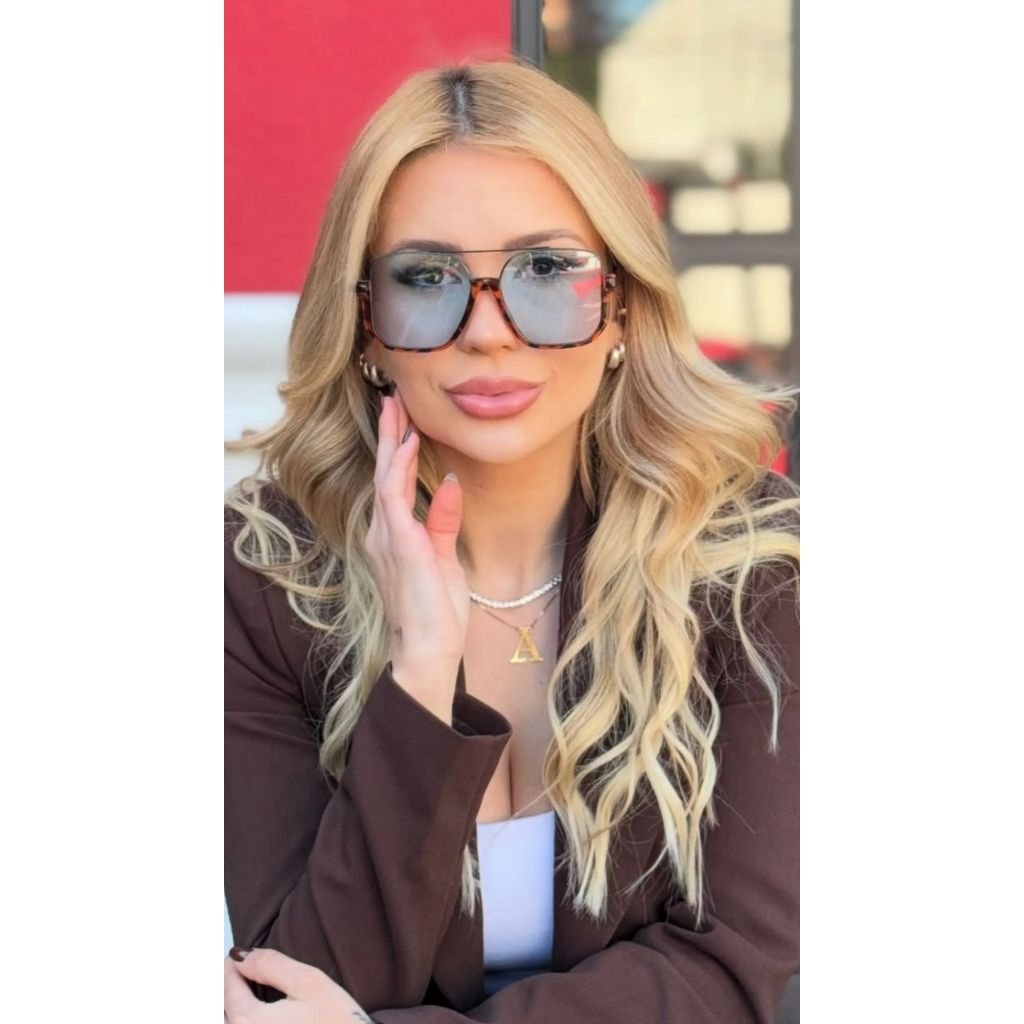 Oculos de sol quadrado Feminino Masculino meia armação Metal tendência elegante e moderno blogueira Proteção UV - Livia
