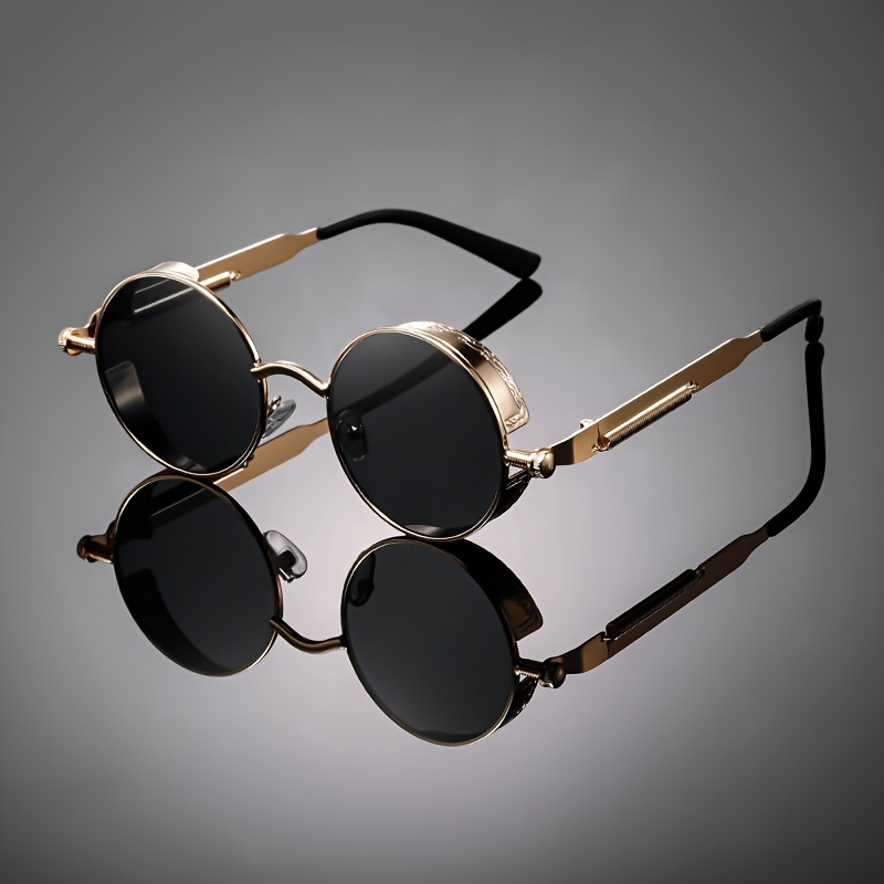 Óculos de Sol Redondo de Metal com Parafusos de Mola e Estilo Punk para Homens e Mulheres, Uso Diário
