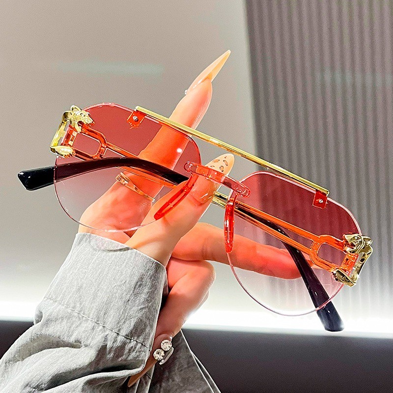 Óculos de sol sem aro com borda chanfrada para mulheres, óculos de proteção UV estilo retrô masculino mais vendido em