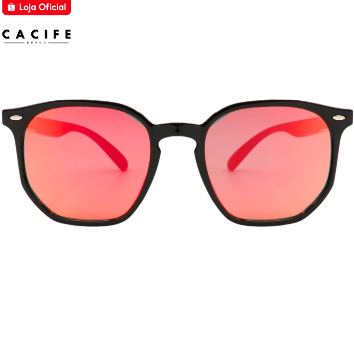 Oculos de Sol Tulum Vermelho Espelhado Hexagonal Original Premium Classico uv400 Masculino Feminino