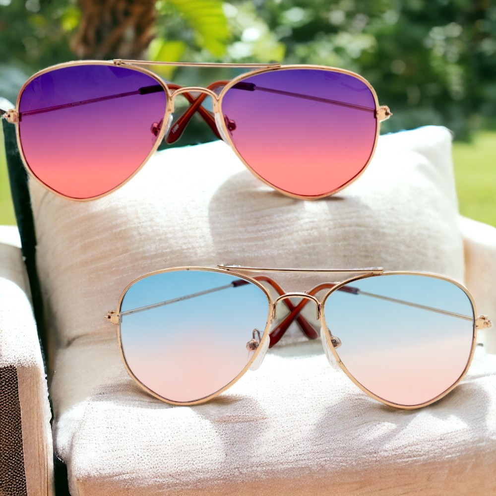 Óculos Feminino e Masculino Infantil Estilo Aviador Alça Dourada e Lente Colorida Kids