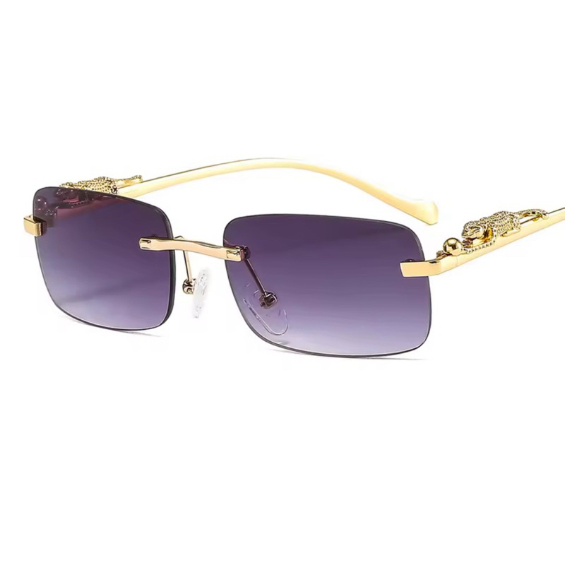 Óculos Feminino Masculino Quadrado Retângular Vintage Sem Aro Hastes de Metal Proteção UV