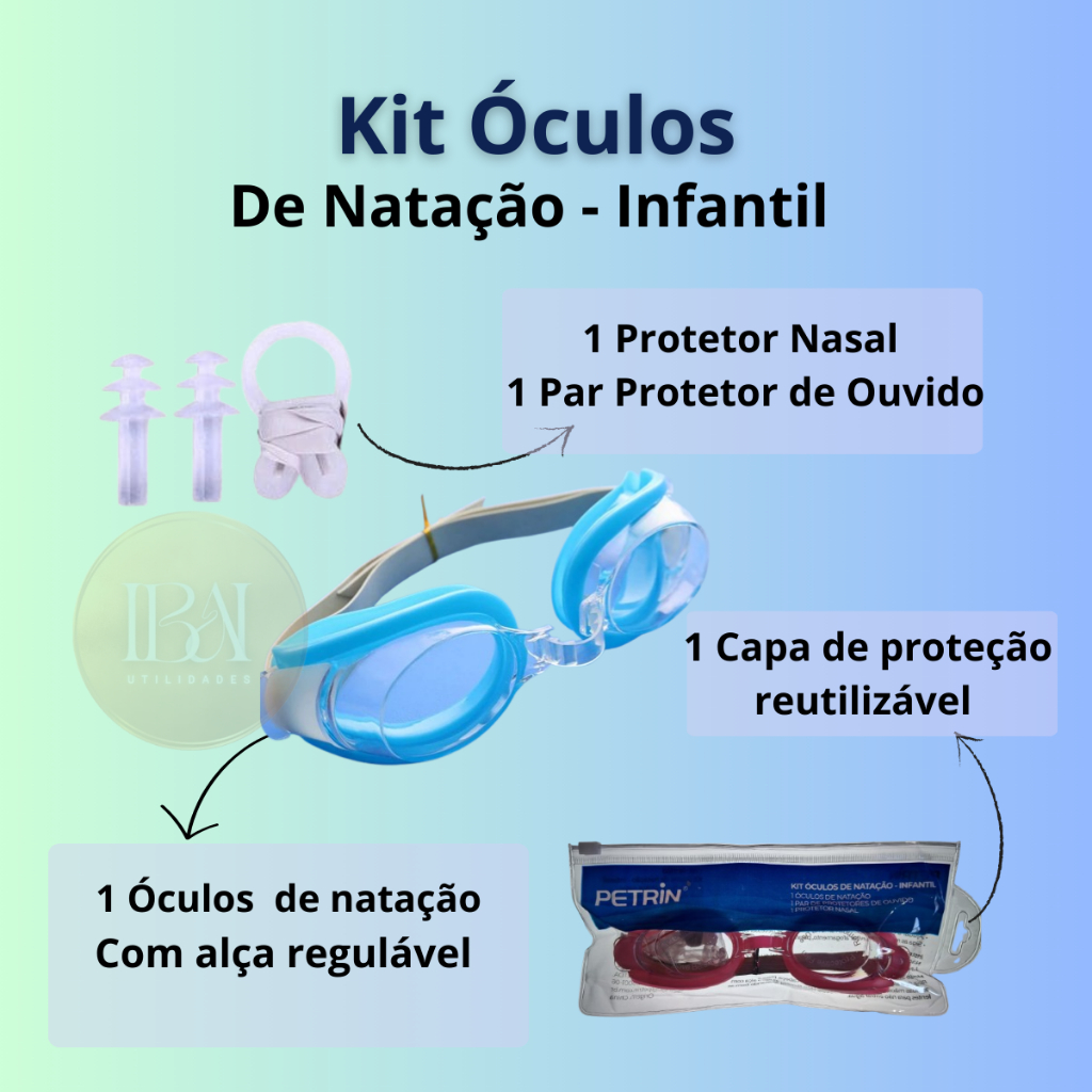 | Óculos Infantil de Natação com Protetor de Ouvido e Nariz – Kit Com... este produto | R$ 14,59 | 84% | 4.8/5 | 3 |