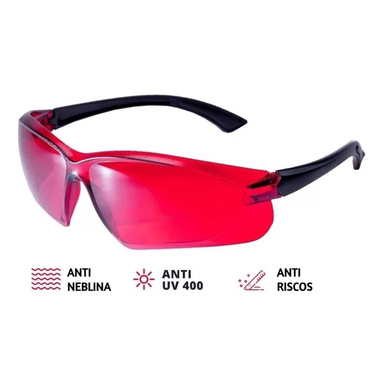 ÓCULOS PARA VISUALIZAR NÍVEL A LASER VERMELHO ANTI-RISCOS - ADA O Óculos Laser Visor Red Ada possui filtro de cor especial para operação com feixe vermelho. Eles são usados para melhor percepção visual do feixe de laser visível, especialmente para trabalhos sob luz fortes ou grandes distâncias. O filtro de luz vermelho bloqueia todo o espectro de luz visível, exceto a vermelha. ANTI EMBAÇANTE . A construção especial dos óculos (sem armação) e almofadas de nariz evita que as lentes embaçam. São projetados de forma a evitar o acúmulo de vapor dentro dos óculos em qualquer atividade física. Os vidros são sempre transparentes. ANTI UV 400. Revestimento especial que impede os olhos dos raios ultravioleta prejudiciais. Este modelo possui 100% de proteção (UV 400). BOLSA MACIA. A bolsa protetora é feita de um pano macio que pode ser usado para limpar as lentes. O soft bag é apertado com uma renda dupla-face para evitar a penetração de poeira de fora.