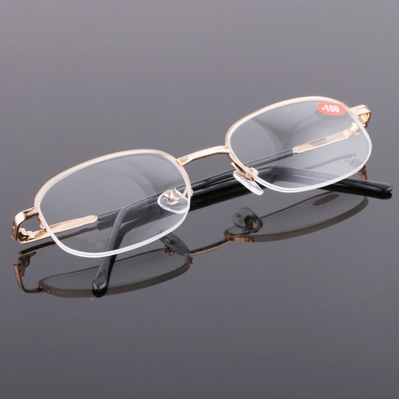 Encomenda: Tempo de envio pode demorar de 12 a 21 dias. Óculos Miopia Semi Aro Metálico Dourado Grau - Lente de Vidro - Aro de metal dourado - graus de miopia altos - pastilhas anatômicas no nariz - acompanha estojo e flanela Descrição: Material: Armação de Metal + Lentes de Vidro Cor: Dourado Largura da lente: 4.9 cm Altura da Lente: 3.4 cm Espaço entre os olhos: 1.8 cm Comprimento das Pernas: 13.0 cm Largura da Armação: 13.4 cm O pacote inclui: 1 óculos de Miopia 1 estojo 1 flanela Cód: GM05