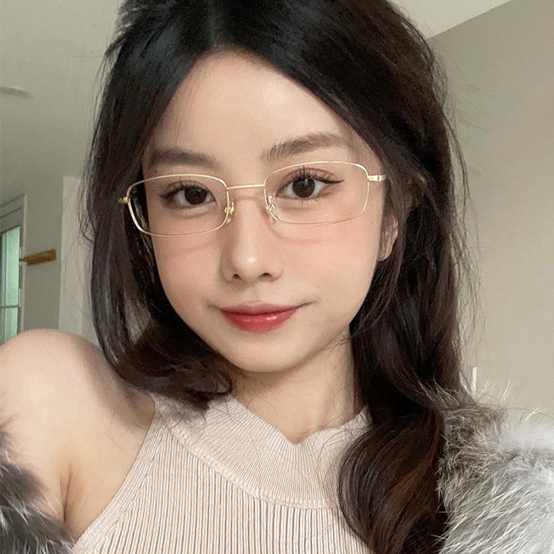 Óculos Retangulares Coreanos , Armação De Metal Dourado , Estéticos Vintage Para Mulheres E Homens