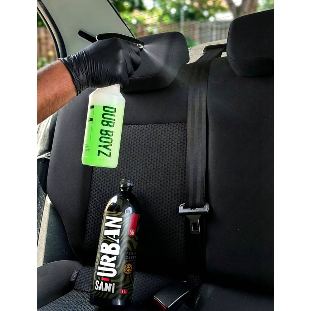 O Toque Final que Revive Seu Carro: Limpeza Profunda e Bem-Estar Instantâneo! Desenvolvido pela Dub Boyz para a higienização automotiva premium, este sanitizante finalizador transforma o interior do seu veículo em um ambiente limpo, fresco e irresistivelmente perfumado. Com fórmula à base de água, é 100% seguro para carpetes, forros de teto, bancos de tecido – sem manchas ou resíduos. Neutraliza odores indesejáveis e bactérias, eliminando maus cheiros. SANI URBAN tem Perfume Premium Amadeirado: Sofisticado e elegante, como um spa sobre rodas. Dub Boyz: Onde a Limpeza Encontra o Luxo. MODO DE USAR Aplique o produto com auxílio de um borrifador, pulverizando de forma uniforme diretamente sobre os tecidos e carpetes do veículo mantendo uma distância aproximada de 20 cm. Deixe agir naturalmente - não é necessário enxágue. O produto pode ser dilido em água na proporção de até 1:3, conforme a intensidade desejada. Evite a aplicação sobre plásticos e couro. Caso ocorra contato acidental, limpe imediatamente com um pano úmido.