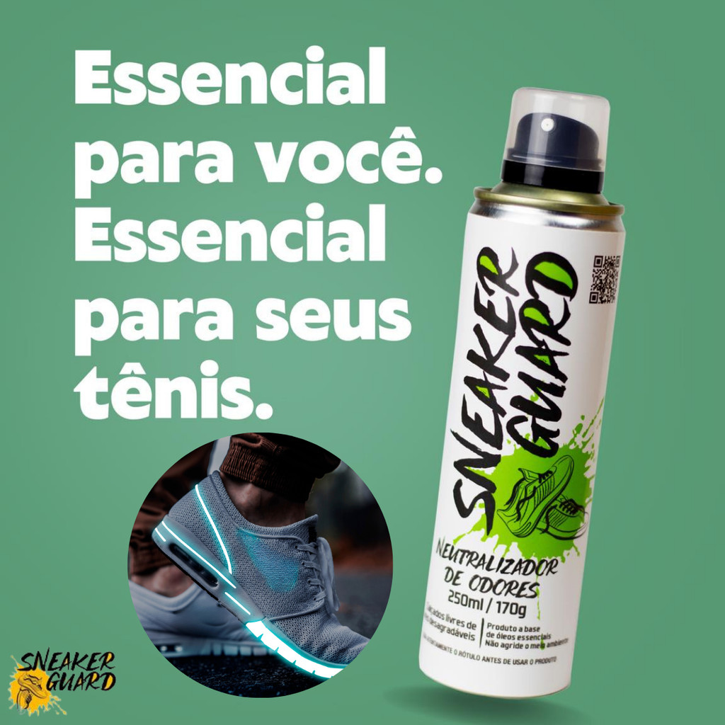 NEUTRALIZADOR DE ODORES PARA TÊNIS SNEAKER GUARD 250ML ELIMINADOR DE ODOR PARA CALÇADOS COM AÇÃO IMEDIATA O Neutralizador de Odores Sneaker Guard 250ml é a solução ideal para quem busca eliminar odor de tênis de forma rápida, eficiente e segura. Desenvolvido como um eliminador de odores para calçados, atua diretamente no controle de odores orgânicos, deixando seus tênis sempre com cheiro agradável e sensação de limpeza. Indicado como spray anti odor para tênis, desodorizador de calçados e eliminador de cheiro de sapato, o Sneaker Guard oferece ação imediata, sendo perfeito para uso antes ou depois de utilizar o calçado. Sua fórmula não contém solventes derivados de petróleo, não mancha e é segura para diversos tipos de materiais, garantindo proteção sem danificar o produto. AÇÃO EFICIENTE CONTRA ODORES O neutralizador de odores atua diretamente na eliminação de odores causados pelo uso diário, suor e umidade, sendo ideal como: eliminador de odor para tênis spray anti odor para calçados desodorizador de sapatos neutralizador de odores para sneakers Também pode atuar em alguns odores de origem química, oferecendo maior eficiência no controle de odores. PRINCIPAIS BENEFÍCIOS Elimina odor de tênis com ação imediata Neutralizador de odores potente Deixa fragrância suave e agradável Não mancha os materiais Produto sem solventes agressivos Seguro para uso em diversos tipos de calçados Fácil aplicação Ideal para uso diário Produto muito buscado como eliminador de odor para tênis, spray anti odor, desodorizador de calçados e neutralizador de odores. INDICADO PARA tênis sneakers sapatos botas calçados em geral Também pode ser utilizado em ambientes e objetos para neutralização de odores. MODO DE USO Agite bem antes de usar Aplique em jatos breves diretamente no calçado Pode ser utilizado antes ou depois do uso Repita a aplicação se necessário Ação imediata com fragrância agradável ESPECIFICAÇÕES Marca: Sneaker Guard Conteúdo: 250 ml Tipo: Neutralizador de odores para tênis Aplicação: Spray