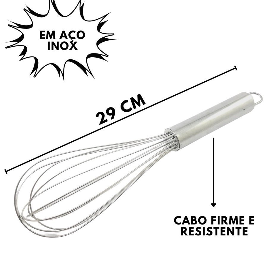 OFERTA Batedor 29cm Reforçado De Clara Cook Profissional Inox Utensilio De Cozinha Aço Inoxidável