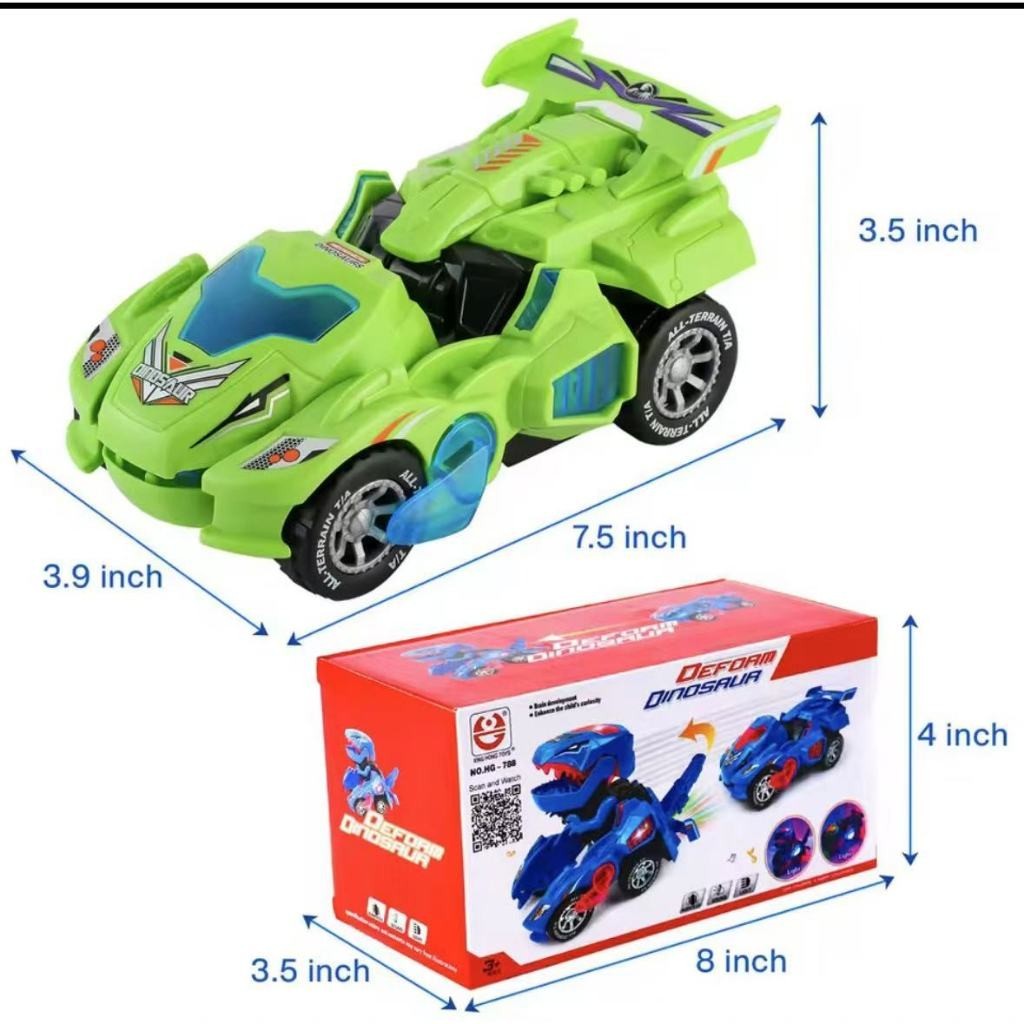**ENVIAMOS NO MESMO DIA** Brinquedo carrinho de dinossauro anda, mexe , luz e som. Cores disponíveis: vermelho, azul e verde. *Medidas no anúncio.* *Não é incluso pilha*