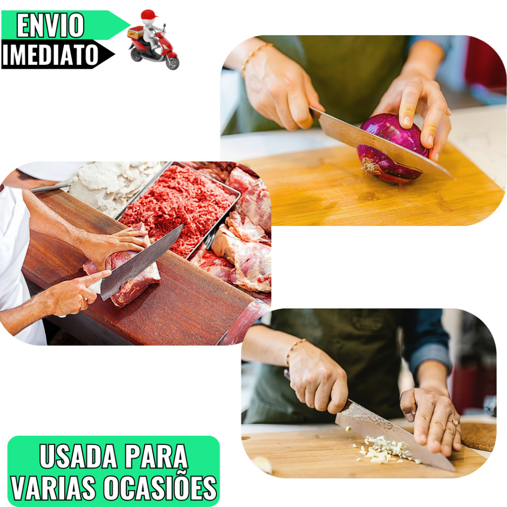 SEJA MUITO BEM-VINDO À DonnaVirtual! ATENÇÃO NAS VARIAÇÕES DISPONÍVEIS: 🔹 1 UNIDADE 🔹 3 UNIDADES 🔹 4 UNIDADES OFERTA Kit 1, 3 ou 4 Facas Profissionais de Chef 6" em Aço Inox com Cabo de Madeira – Qualidade e Precisão Este Kit Facas de Chef de 6 polegadas é indispensável para quem busca precisão, durabilidade e estilo na cozinha. Fabricadas em aço inoxidável de alta qualidade, essas facas oferecem cortes precisos e uma lâmina afiada que facilita o preparo de alimentos. O cabo de madeira natural proporciona um manuseio confortável, seguro e ergonômico, sendo ideal para uso doméstico ou profissional. Seja para cortar carnes, legumes, frutas ou ervas, essas facas são projetadas para atender às necessidades dos cozinheiros mais exigentes. Combinam funcionalidade e elegância, tornando-se o acessório perfeito para sua cozinha. Características do Produto: - Lâmina: Aço inoxidável resistente à corrosão, com fio duradouro para cortes precisos. - Cabo: Madeira natural com design ergonômico, oferecendo conforto e segurança no manuseio. - Tamanho Total: Aproximadamente 28 cm (incluindo lâmina e cabo). - Uso Versátil: Perfeita para cortes de carnes, vegetais, frutas e outros alimentos. - Design Elegante: Acabamento refinado, ideal para cozinhas modernas e tradicionais. - Manutenção: Lavar à mão e secar imediatamente para preservar o fio da lâmina e o cabo de madeira. Adquira já o Kit Facas de Chef Profissionais de 6" e transforme sua experiência na cozinha com utensílios de alta qualidade que garantem cortes precisos e desempenho excepcional!