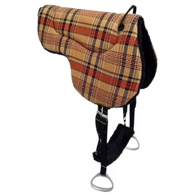 MANTA SELA BAIXEIRO COUNTRY - Fabricado em tecido com forro todo em pelúcia, nas cores Xadrez, Cardif ou Oxford - Preenchido com espuma de densidade 20 com 3cm de altura + uma camada de feltro para evitar que passe suor do animal. - Parte inferior toda em pelúcia - Medidas: 93cm de Largura por 65cm de Comprimento - Arreada com tiras de cadarço reforçada e estribos em metal - Possui a Barrigueira em pelúcia - Peso aproximado de 1 KG - CASO TENHA ALGUMA DÚVIDA ENTRE EM CONTATO CONOSCO PELO CHAT QUE IREMOS LHE AJUDAR. Atenciosamente Mundo Animal Accessóries!