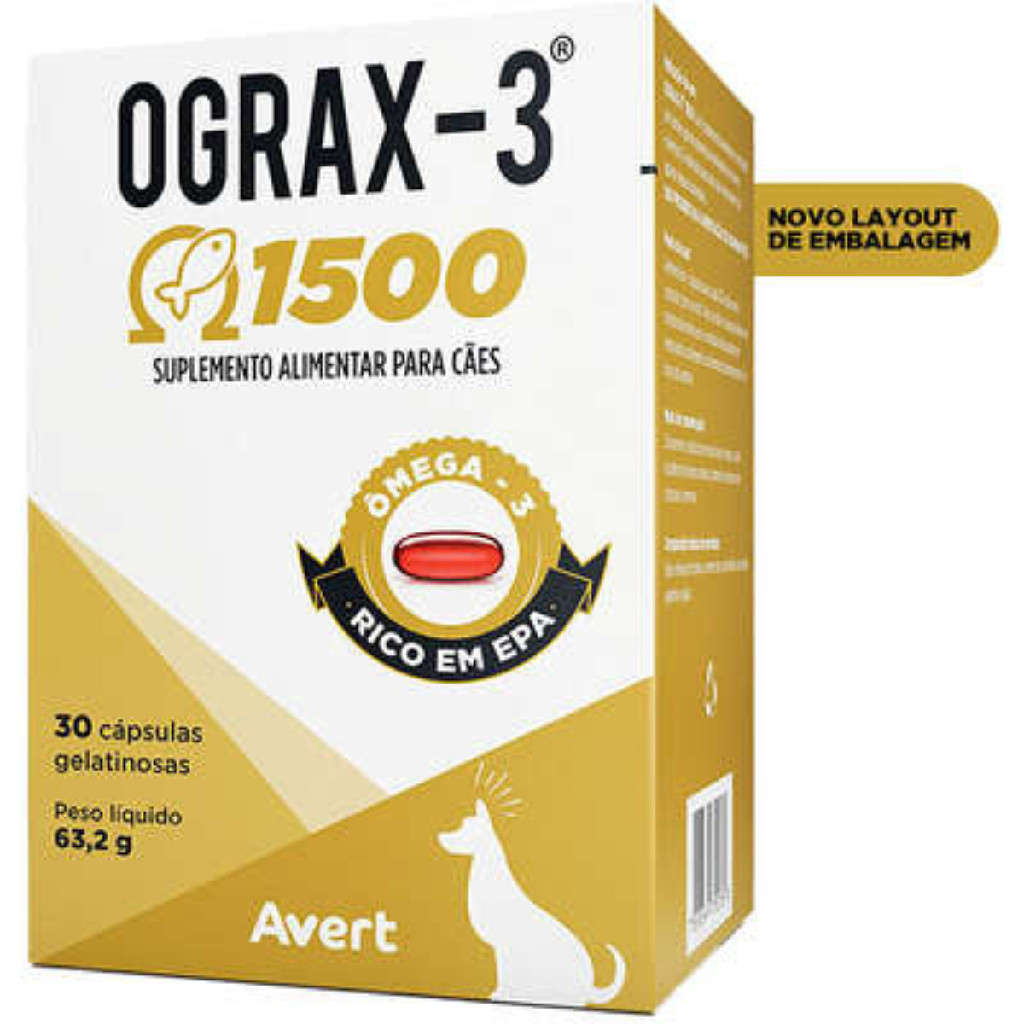Ograx-3 1500 Suplemento Alimentar Pra Cães 30 Cápsulas 53,0g