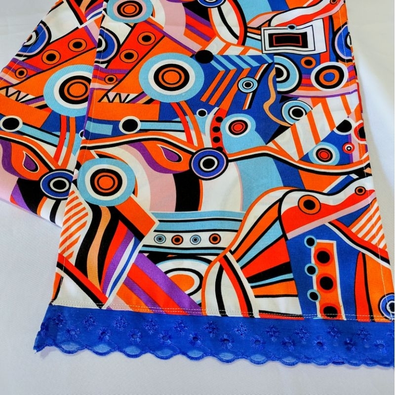 Pano de cabeça ojá, modelo reto, confeccionado em tecido Oxford estampa africana, tecido resistente e de ótimo caimento. Possui bordado inglês nas laterais menores, que acrescenta um acabamento delicado e elegante à peça. Com medidas aproximadas de 2 metros de comprimento por 30 cm de largura, é ideal para amarrações tradicionais, uso religioso, cultural ou como acessório estiloso no dia a dia. Versátil, confortável e com excelente durabilidade. Produto artesanal, comumente utilizado no candomblé e na umbanda.