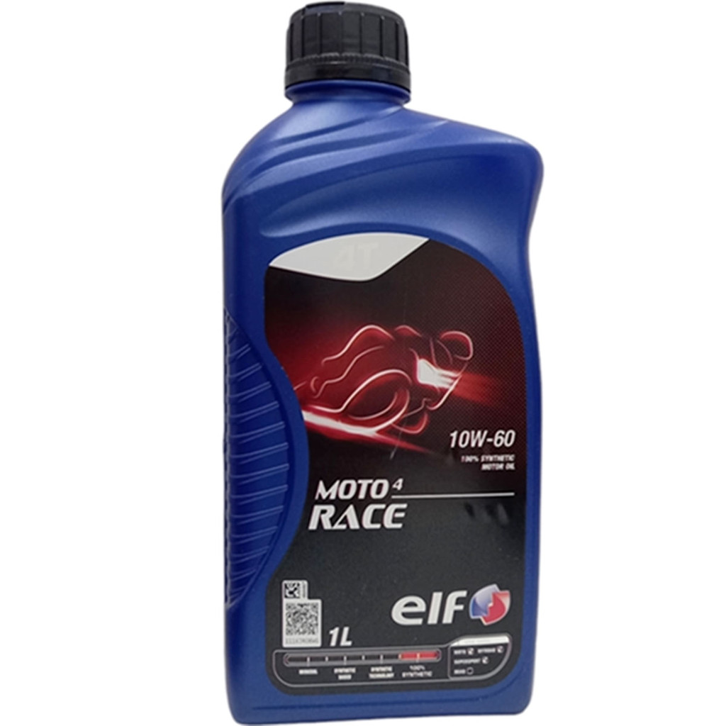 Óleo 100% Sintético Moto 4 Race 10w60 - 4 Tempos ELF - 1L Código do produto: 213947 ANP: 14617 Lubrificante particulamente recomendado para todos os tipos de motores de motocicleta 4 tempso de alta performace em conformidade com niveis de desempenho internacionais API SL e JASO MA2. A viscosidade 10w60 garante a residência da película de óleo formada entre as superfícies móveis mediante as variações extremas de temperatura.