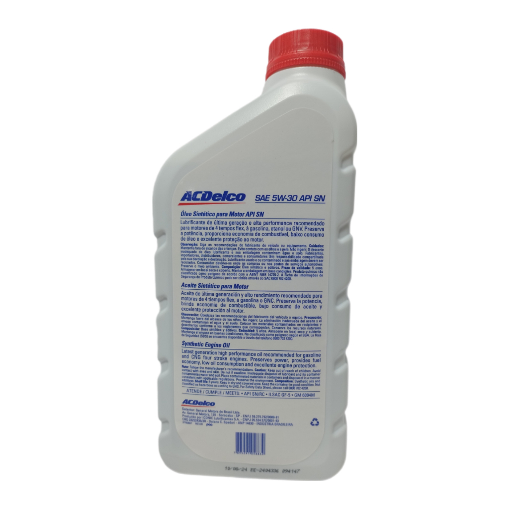 Óleo 5w30 SN 100% Sintético Prisma Onix Agile Spin Cruze 4 Litros Original GM Acdelco 98550168