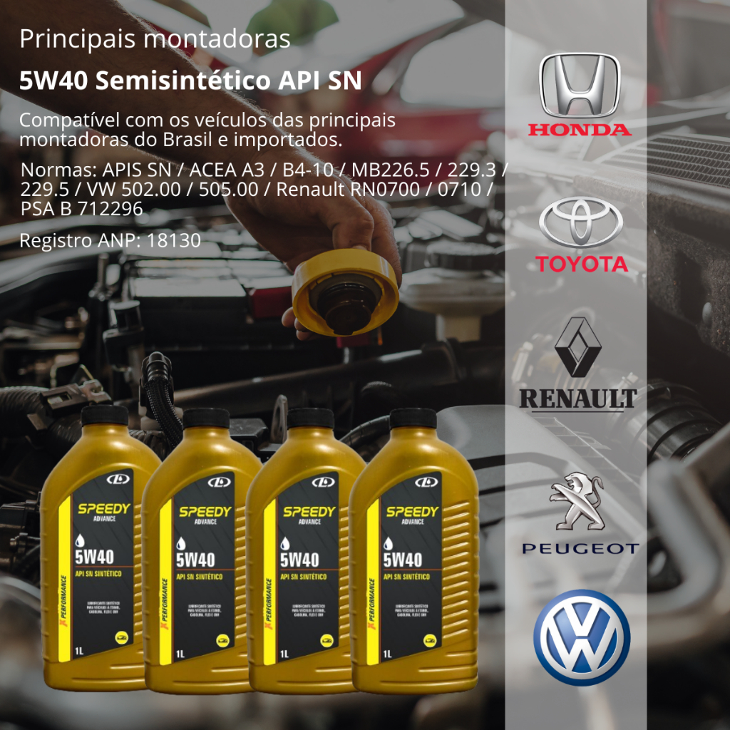 Bem Vindo a loja oficial da VGFC DISTRIBUIÇÃO! A satisfação dos nossos clientes é a nossa prioridade! Retire suas dúvidas antes de realizar a compra! ÓLEO 5W40 COM O MELHOR CUSTO/BENEFÍCIO DO MERCADO *** REGISTRO ANP: 18130 *** A SPEEDY CAR oferece lubrificantes de última geração, seguindo as inovações da indústria automobilística. O óleo 5W40 SPEEDY CAR é uma ótima opção para quem procura um óleo de alta performance com um excelente custo-benefício. Ele é formulado com ingredientes de alta qualidade e oferece uma excelente proteção para o motor, o que ajuda a prolongar sua vida útil e economizar combustível. Vantagens do óleo 5W40 Speedy Car: - Proteção superior contra o desgaste, corrosão e aquecimento; - Melhora a economia de combustível; - Prolonga a vida útil do motor; - Formulado com óleos de última geração; - Custo-benefício excelente; O óleo de alta qualidade 5w40 proporciona uma lubrificação eficiente, reduzindo o desgaste e melhorando o desempenho do motor. Garantia do vendedor 3 meses Se tiver alguma dúvida entre em contato conosco! Sua satisfação é nossa prioridade! ATENÇÃO: - Não nos responsabilizamos pelo mau uso ou instalação indevida do produto. - Recomendamos que a instalação seja realizada por um profissional especializado. - Algumas imagens ( fotos ) são meramente ilustrativas. VGFC DISTRIBUIDORA É UMA EMPRESA DO GRUPO ZT DIESEL QUE ATUA NO MERCADO DE REPARAÇÃO VEICULAR DESDE 1993!