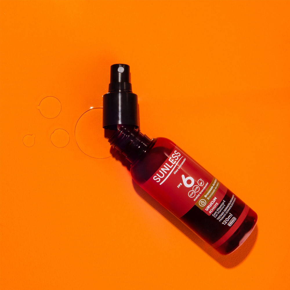 O Óleo Bronzeador Urucum FPS 6 Sunless 120ml é perfeito para deixar a pele com um tom dourado. Fácil de espalhar pelo corpo, o produto tem ação duradoura e oferece um bronzeado homogêneo. Sua composiç