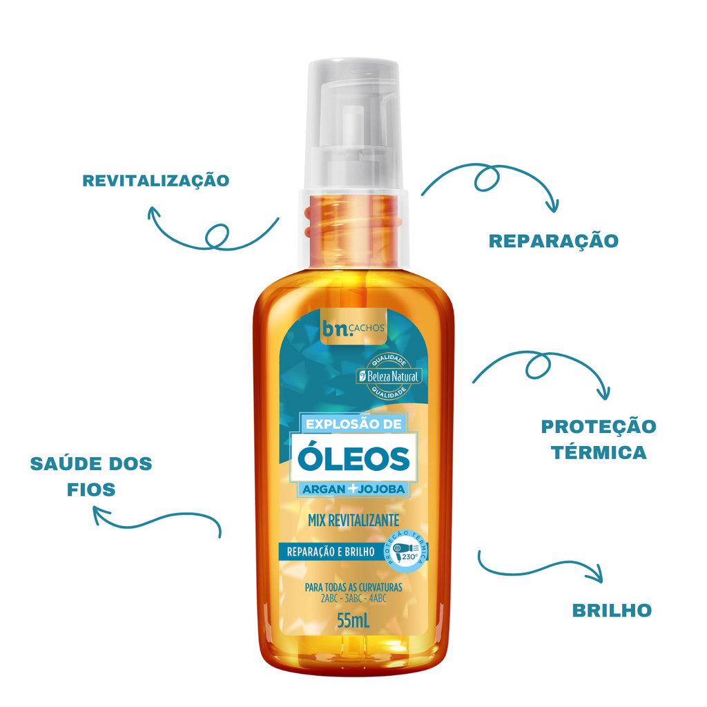 Óleo Capilar Explosão de Óleos Jojoba + Argan 55ml – Beleza Natural bn.Cachos