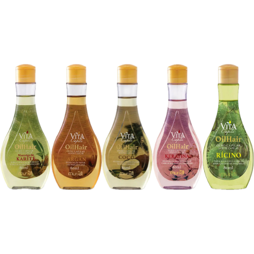 Os Óleos Minerais Capilares Vita Capili possuem uma fórmula leve que não pesa nos fios, auxiliando no controle do frizz e na redução da eletricidade estática, além de proporcionar brilho intenso aos cabelos.\ CUIDADOS: Uso externo. Manter fora do alcance de crianças. Não ingerir. Não aplicar na pele irritada ou ferida. Em caso de contato com os olhos lavar com água abundantemente com água. Havendo irritação ou sensibilidade suspenda o uso do produto e procure orientação médica. ➡️ Óleo Capilar Vita Capili ABACATE - Revitaliza e Fortalece - Para cabelos secos e ásperos ➡️ Óleo Capilar Vita Capili BABOSA - Hidratação profundo e progressiva ➡️ Óleo Capilar Vita Capili CERA DE ABELHA - Brilho, maciez e reduz volume - Para cabelos cacheados e volumosos ➡️ Óleo Capilar Vita Capili CERAMIDAS - Hidrata e restaura a ceramida natural do cabelo ➡️ Óleo Capilar Vita Capili JABORANDI - Força e Nutrição ➡️ Óleo Capilar Vita Capili MANTEIGA DE KARITÉ - Força, Hidratação e Brilho - Para cabelos secos e danificados ➡️ Óleo Capilar Vita Capili ARGAN - Hidratação total - Liso prolongado ➡️ Óleo Capilar Vita Capili COCO - Nutrição e Hidratação - Maciez e Brilho ➡️ Óleo Capilar Vita Capili KERATINA - Restaura os fios deixando os cabelos brilhantes e saudáveis ➡️ Óleo Capilar Vita Capili RICINO - Fortalece os fios e auxilia na diminuição da queda de cabelos ➡️ Óleo Capilar Vita Capili SEMENTE DE UVA - Hidrata, Regenera e Amacia os cabelos ➡️ Óleo Capilar Vita Capili SILICONADO - Restaura e fortalece os cabelos opacos e quebradiços