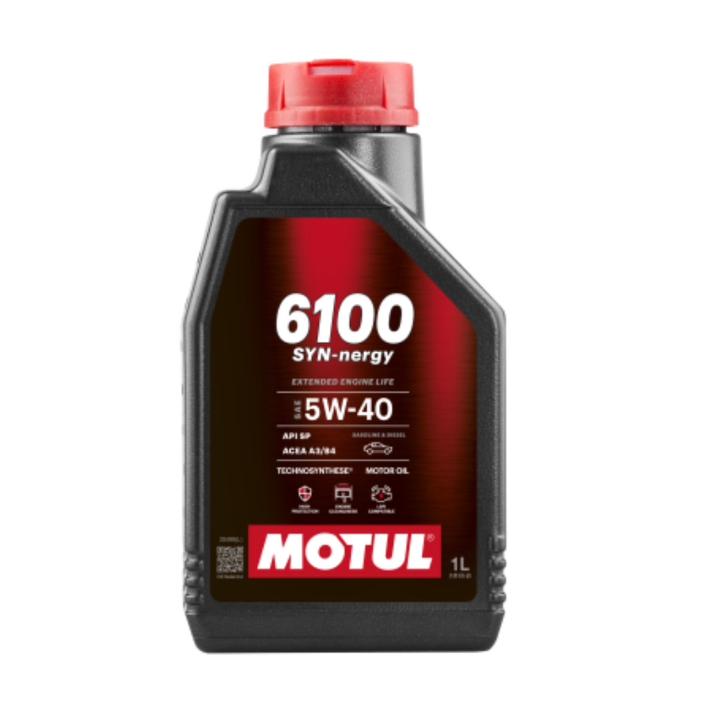 MOTUL 6100 SYN-NERGY 5W-40 1 LITRO Lubrificante Technosynthese® para alta performance e alta proteção. Atende aos níveis modernos e exigentes das normas API e ACEA. Protege contra os riscos de pré-ignição LSPI (Pré-ignição em Baixa Velocidade). Adequado para todos os tipos de combustíveis: Gasolina com ou sem chumbo, Etanol, GLP, Diesel e biocombustíveis. Qualidade: Technosynthese Homologações: BMW LL-01, CHRYSLER MS 12991, CHRYSLER MS 10725, CHRYSLER MS 10896, FIAT 9.55535-H2, FIAT 9.55535-M2, FIAT 9.55535-N2, FIAT 9.55535-Z2, PORSCHE A40, PSA GROUPE PSA B71 2296, RENAULT RN0710 - RN0700 ACEA: A3/B4 API: SERVICE SN
