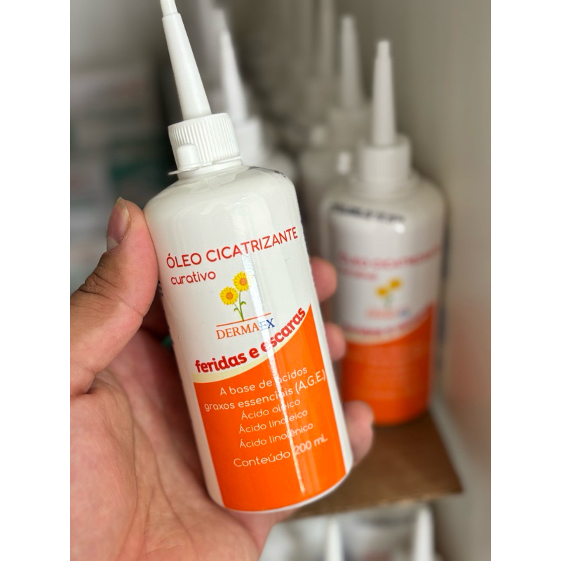 ENTREGA RÁPIDA!! ÓLEOS CICATRIZANTES 200ML DERMAEX PARA FERIDAS E ESCARAS Óleo cicatrizante curativo com base em Ácidos Graxos Essenciais (ácido oleico e ácido linolenico). Além de possuir vitaminas A e E e ainda, óleo de soja e óleo de copaíba, afim de hidratar e prevenir feridas e escaras. Indicações: Óleo de Girassol Dermaex é indicado para aplicar em pele integra para prevenção de úlcera de pressão; Feridas agudas e crônicas com ou sem infecção de qualquer etiologia; Feridas com perda de tecido superficial e parcial; Dermatites peri-lesões; Queimaduras de primeiro e segundo grau; Dermatite amoniacal; dermatites peri-gastros-tomias, traqueostomias e drenos. Benefícios: -Hidrata a pele íntegra para prevenção úlceras por pressão; -Feridas agudas e crônicas com ou sem infecção, de qualquer etiologia; -Feridas com perda de tecido superficial e parcial; -Dermatites peri-lesões; -Queimaduras de primeiro e segundo grau; -Assaduras de bebê; -Dermatites peri-gastrostomias, traqueostomias e drenos. -Revitaliza a pele auxiliando na prevenção da formação de escaras; -Mantém o equilíbrio hídrico da pele e proporciona maciez; -Proteção e suavidade. Modo de usar: Aplicar Óleo de Girassol Dermaex nos locais desejados sempre que necessário. Para PREVENIR úlceras de pressão (escaras), passar na pele limpa de 3 a 4 vezes ao dia, principalmente nas áreas mais fácies de aparecer feridas (ombros, cóccix, costas, lateral externa da coxa, calcanhar e joelhos). Para TRATAR úlceras de pressão (escaras), úlceras diabéticas, úlceras de perna, feridas cirúrgicas abertas e outras lesões de pele crônicas e agudas. Lavar a ferida com soro fisiológico, ou água corrente, sem esfregar. Secar somente em volta da lesão, sem esfregar o meio da ferida para não destruir o tecido novo que o corpo esta formando. Aplicar o Óleo de Girassol Dermaex na ferida, cobrir com gaze e embeber esta gaze com mais óleo. Aplicar gaze em cima daquela úmida e fechar o adesivo com micropore, esparadrapo ou atadura. Importante: Faça o curativo de 1 à 2 vezes ao dia. A troca frequente reduz a temperatura do local da ferida, o que pode retardar o processo de cicatrização e pode levar até mesmo o desenvolvimento de um ferida complexa. Precauções: O Óleo de Girassol Dermaex vem disponível em um frasco de 200ml, para uso externo, e possui validade de até 6 meses após aberto. Conservar em temperatura ambiente. Dermaex pode ser removido com água morna e sabão neutro. Em caso de alergia ou irritação durante o tratamento, suspender o uso e procurar ajuda médica. Conteúdo da embalagem: -1 Frasco de 200ml óleo de girassol cicatrizante QUALQUER DUVIDA ESTAMOS A DISPOSIÇAO