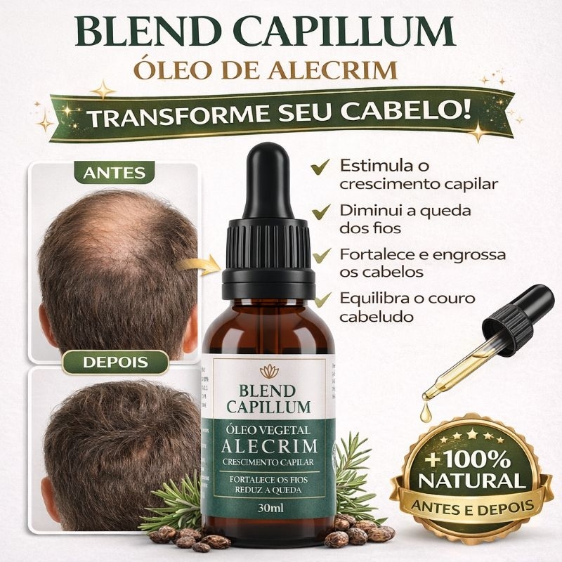 🌿 Óleo de Alecrim Blend Capillum – Crescimento Capilar Acelerado O Óleo de Alecrim é um poderoso aliado no cuidado dos cabelos. Sua fórmula 100% natural estimula a circulação no couro cabeludo, fortalece os fios desde a raiz e auxilia na redução da queda. Ideal para quem deseja: ✔ Estimular o crescimento capilar ✔ Fortalecer fios fracos e quebradiços ✔ Reduzir a queda ✔ Combater a caspa ✔ Deixar o cabelo mais encorpado e saudável 💚 Benefícios: • Estimula o crescimento natural dos fios • Fortalece e encorpa • Auxilia no combate à queda • Ajuda na saúde do couro cabeludo • Produto 100% natural 📌 Modo de uso: Aplique algumas gotas diretamente no couro cabeludo e massageie por 2 a 5 minutos. Deixe agir por no mínimo 2 horas ou durante a noite. Lave normalmente em seguida. Pode ser usado de 2 a 3 vezes por semana. 📦 Conteúdo: 30ml 🌱 Uso capilar ✨ Indicado para todos os tipos de cabelo
