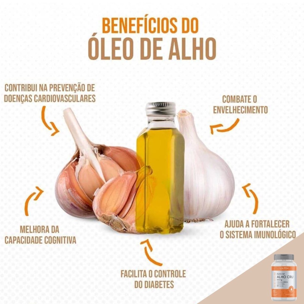 | Óleo de Alho Cru 500mg 60 Cápsulas Softgel Lauton - Kit 2 potes este produto | R$ 57,48 | — | 5.0/5 | — |