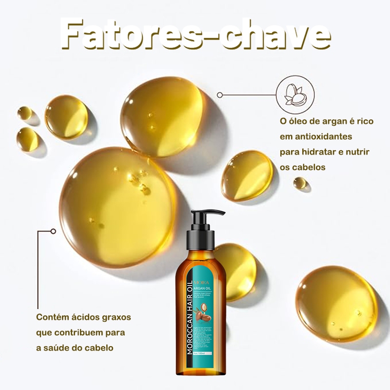 Óleo de Argan Marroquino MOIKA 100ml - Nutre, Repara e Previne Queda, Absorção Rápida, Cabelos Macios e Brilhantes
