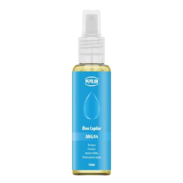 Óleo De Argan Reconstrução Capilar 120Ml - Pepilon O Óleo Capilar Argan Pepilon enriquecido com óleos vegetais, proporciona nutrição, brilho e maciez aos cabelos. Ajuda no desembaraço e condicionamento dos fios. Restaura, Antifrizz, Maciez e Brilho, Reconstrução capilar Sem adição de corantes. Sem adição de parabenos. Modo de Usar: Com os cabelos úmidos ou secos, borrife nas pontas dos fios e espalhe de cima para baixo. Não aplicar na raiz. Imagens Meramente Ilustrativas. Todas as Informações Divulgadas são de Responsabilidade Exclusiva do Fabricante/fornecedor.