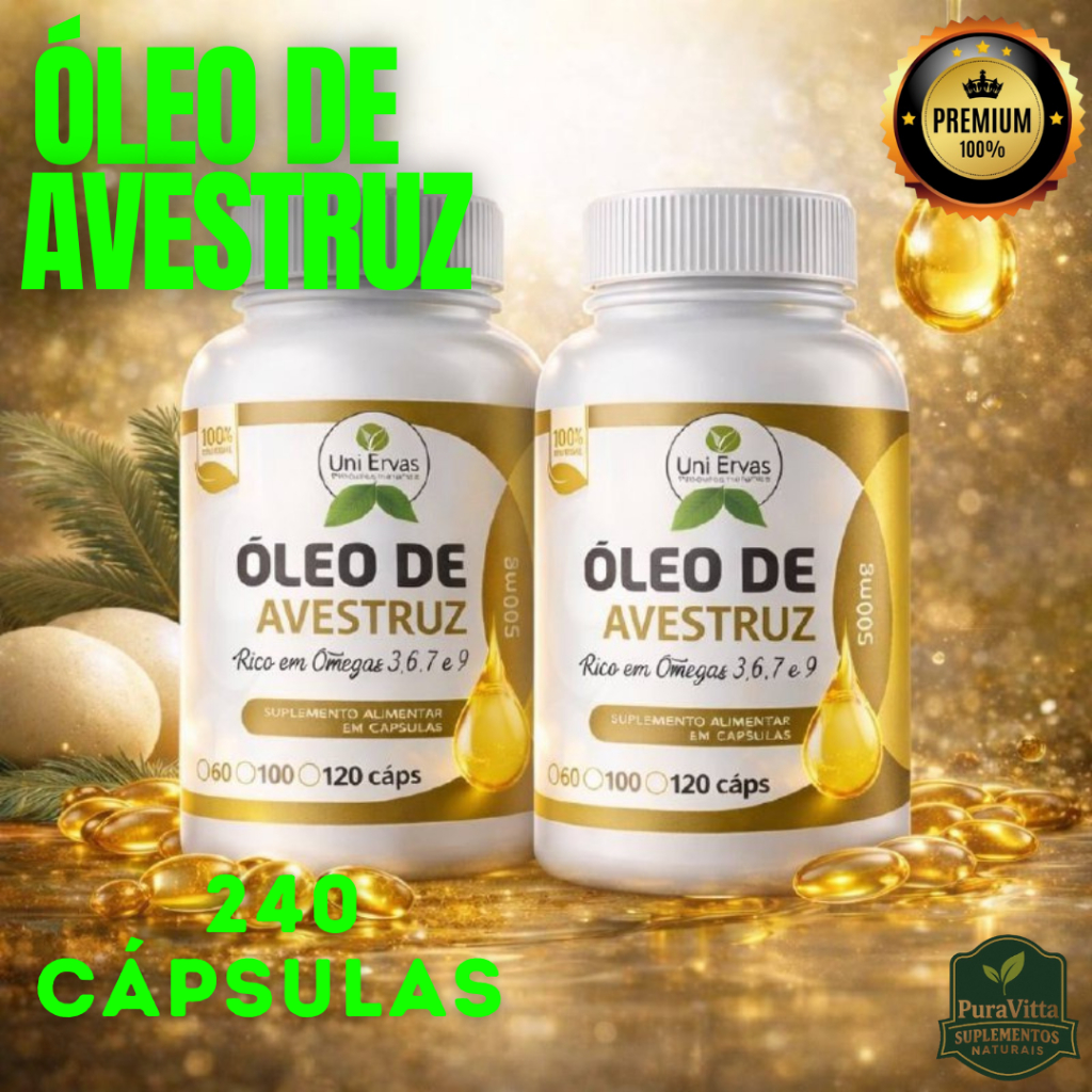 Óleo De Avestruz - Rico Em Ômega 3-6-7 3 9 - Suplemento 100% Natural 120 Cápsulas 500Mg