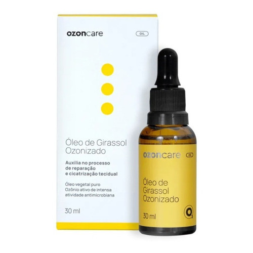 Óleo de Girassol Ozonizado - 30ml O óleo de girassol ozonizado possui Intensa atividade germicida (fungos, bactérias e vírus), além de ser um potencial aliado para locais com difícil cicatrização. Descrição do produto: Ações principais: Intensa atividade germicida (fungos, bactérias e vírus); Ativação da microcirculação; Melhora do metabolismo celular do oxigênio; Estimulação do crescimento do tecido de granulação, como epitelização e revitalização do tecido epitelial. Forte ativo cicatrizante No óleo ozonizado, os princípios ativos resultantes do processo de ozonização são os hidroperóxidos e outros produtos de peroxidação lipídica que possuem propriedades germicidas inespecíficas e agem de modo satisfatório sobre os processos de cicatrização e regeneração dos tecidos. Um dos principais e mais conhecidos mecanismos de ação do ozônio está relacionado à sua atividade altamente oxidativa, sendo um agente potencialmente biocida, atuando contra fungos, bactérias e vírus. Quanto maior o índice de peróxidos, menor a concentração Mínima Inibitória (CMI). Para ter atividade antimicrobiana, o Índice de Peróxidos deve estar ao redor de 600 meq/kg - na Philozon nós trabalhamos nesta faixa de ozonização. Estudos clínicos ainda demonstraram seu potencial efeito em diversas situações, como: dificuldade de cicatrização, micoses, úlceras, osteomielites, pós-operatórios de cirurgias anorretais, herpes, etc. Isso se deve à liberação lenta e gradual do oxigênio.