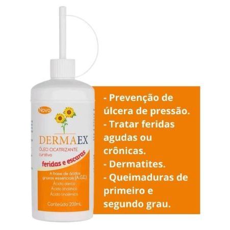 O Dermaex Óleo Cicatrizante Curativo é indicado para o cuidado e tratamento da pele em casos de feridas, escaras e áreas lesionadas, auxiliando no processo de cicatrização e regeneração cutânea. Sua fórmula é desenvolvida à base de Ácidos Graxos Essenciais (AGE), que contribuem para a hidratação, proteção e recuperação da pele. Principais benefícios: Auxilia na cicatrização de feridas e escaras Ajuda na regeneração da pele Mantém a pele hidratada e protegida Fácil aplicação com bico dosador Composição ativa: Ácidos graxos essenciais (AGE) Ácido oleico Ácido linoleico Ácido linolênico