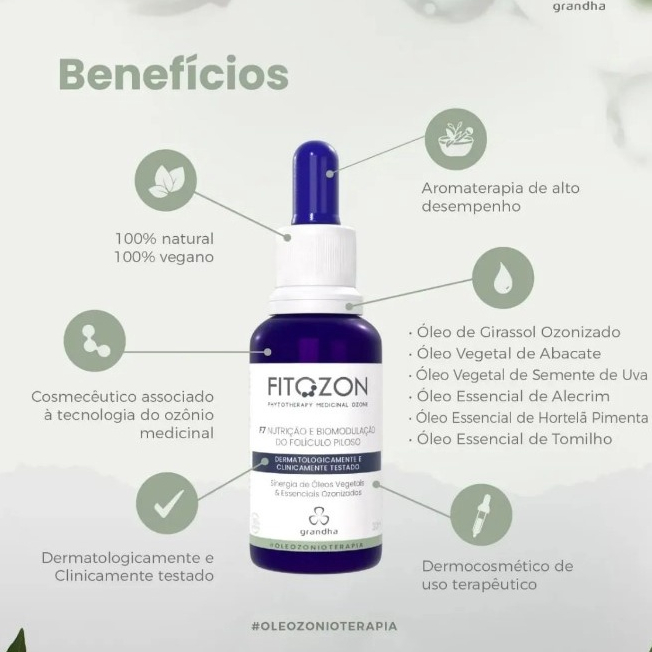 Óleo de Girassol Ozonizado Grandha Fitozon F7 Nutrição Capilar Biomodulação do Folículo Piloso