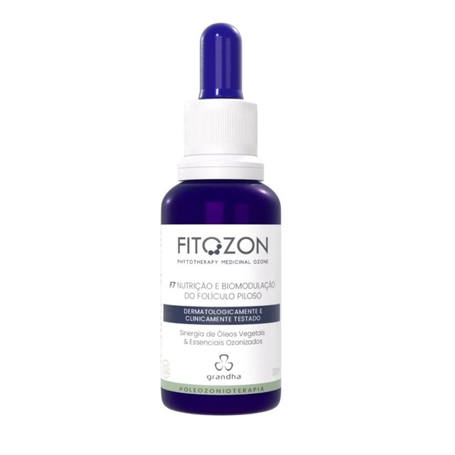 NUTRIÇÃO E BIOMODULAÇÃO DO FOLÍCULO PILOSO Você deseja nutrir e biomodular o seu folículo piloso para alcançar um cabelo saudável, forte e com aspecto rejuvenescido? Então você precisa conhecer Fitozon F7, uma sinergia exclusiva de óleos ozonizados e essenciais, desenvolvida pela Alkymia di Grandha. Fitozon F7 é formulado com óleos vegetais preservados de abacate e semente de uva, além de óleo de girassol ozonizado, um poderoso antioxidante que protege os fios dos danos causados por radicais livres. Sua fórmula também contém óleo essencial de alecrim, hortelã pimenta e tomilho, que estimulam a produção capilar, auxiliam no combate à queda e fortalecem o sistema autoimune. Com Fitozon F7, você pode usufruir de um tratamento anti-idade completo para o seu cabelo, que ajuda a evitar e combater inflamações do sistema capilar. A aplicação dos óleos proporciona uma vasodilatação, o que significa que o fluxo sanguíneo será maior e a nutrição do seu cabelo será mais eficiente. Além disso, Fitozon F7 é 100% natural e vegano, não testado em animais e dermatologicamente testado. Experimente agora mesmo Fitozon F7 e veja a diferença em seu cabelo. Adquira agora mesmo a exclusiva sinergia de óleo ozonizado com óleos essenciais e vegetais preservados da linha Fitozon de Alkymia di Grandha, a nova tendência em aromaterapia de alto desempenho, cosmética terapêutica e cuidados integrados de beleza e bem-estar. Fitozon F7 é uma sinergia orientada à dinâmica de nutrição e biomodulação do folículo piloso, associando os ácidos graxos mais relevantes ao sistema capilar com antioxidantes de alto desempenho e componentes fitoterápicos essenciais. Óleo de Girassol Ozonizado Óleo Vegetal Preservado de Abacate Óleo Vegetal Preservado de Semente de Uva Óleo Essencial de Alecrim Óleo Essencial de Hortelã Pimenta Óleo Essencial de Tomilho Ideal para: AUXILIAR NO COMBATE À QUEDA CAPILAR ESTIMULAR A PRODUÇÃO CAPILAR TRATAMENTO ANTI-AGE NO SISTEMA CAPILAR VASODILATAÇÃO USO COMO ANTIOXIDANTE FORTALECIMENTO DO SISTEMA AUTOIMUNE EVITAR E COMBATER INFLAMAÇÕES DO SISTEMA CAPILAR. MODO DE USO Aplicar sobre a região desejada, massageando-a suavemente para melhor absorção do produto. Usar em massagens faciais e cranianas. Não enxaguar. CONTRAINDICAÇÕES Não usar em gestantes, pessoas com hipertiroidismo, anemia severa ou hemorragia ativa. SOBRE A LINHA FITOZON A linha Fitozon de Alkymia di Grandha contempla a aplicação do ozônio medicinal em óleos fixos, integrando o melhor da engenharia cosmética e da tecnologia de processos industriais para cumprir o "Protocolo de Madri", documento base internacional que estabelece as condições de eficácia e segurança para uso e aplicação deste recurso. Estas preparações são associadas a outros óleos essenciais com seus benefícios extraordinários para fins específicos. A linha Fitozon de Alkymia di Grandha apresenta uma nova tendência em aromaterapia de alto desempenho, com foco nos cuidados e protocolos de saúde integrativa, beleza e bem-estar. 100% NATURAL 100% VEGANO AROMATERAPIA DE ALTO DESEMPENHO DERMOCOSMÉTICO DE USO TERAPÊUTICO COSMECÊUTICO ASSOCIADO À TECNOLOGIA DO OZÔNIO MEDICINAL DERMATOLOGICAMENTE TESTADO CLINICAMENTE TESTADO EXCLUSIVA SINERGIA DE ÓLEO OZONIZADO COM ÓLEOS ESSENCIAIS E ÓLEOS VEGETAIS PRESERVADOS NÃO TESTADO EM ANIMAIS
