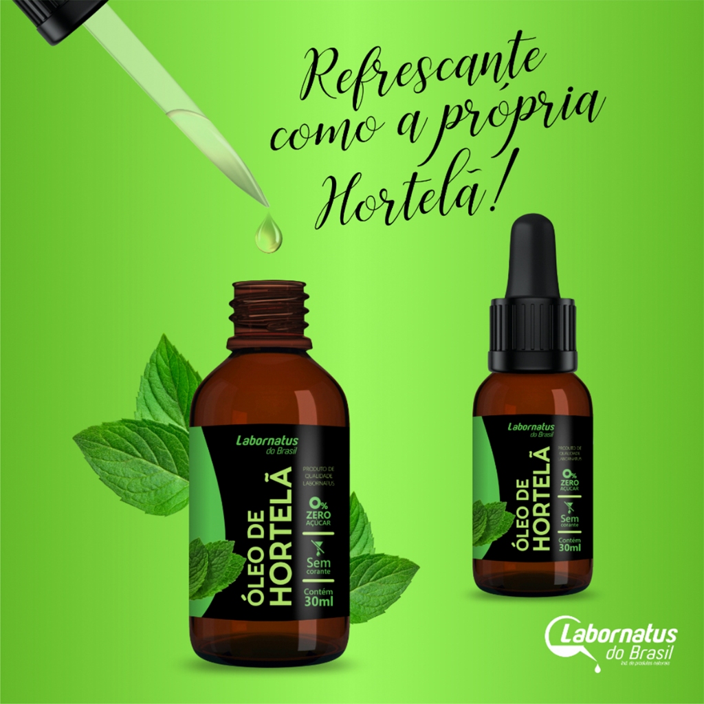 1 Óleo Essencial de Hortelã Pimenta 30ml Labornatus. --------------------------- Apresentação --------------------------- Óleo Essencial de Hortelã Pimenta 30ml. Óleo de Hortelã pode ser ingerido ou inalado para obter seus benefícios. Também pode ser usado para massagear a pele. - 100% puro e natural. - Embalagem conta gotas, versátil e prático. - Refrescante como a própria hotelã. - Zero açúcar. - Sem corante. - Não contém glúten. - Não contém lactose. Produto dispensado de registro conforme RDC 240/18 e 243/18.