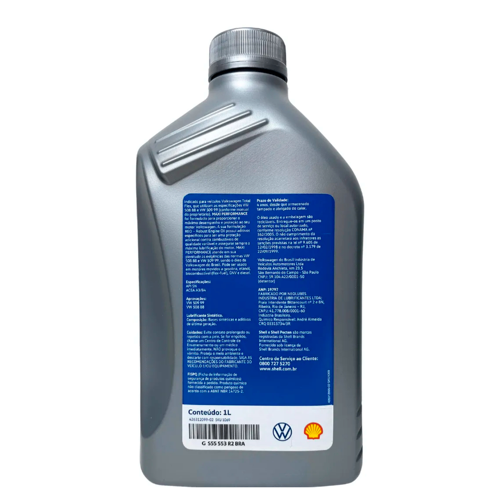 Óleo de Motor 5w40 Volkswagen Shell Maxi Performance 502 505 100 Sintético Api Sn GJZZ502M2BRA