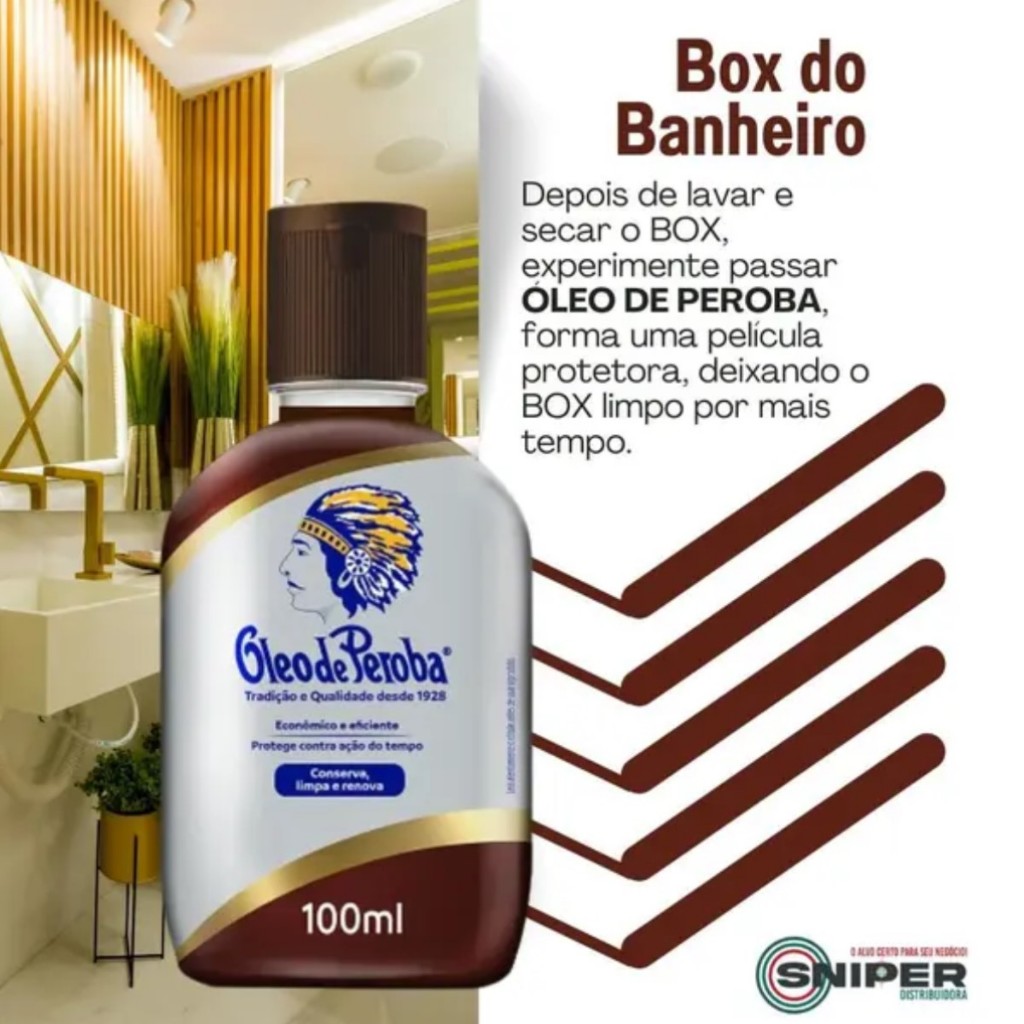 ÓLEO DE PEROBA KING 100ML Mantenha seus móveis sempre brilhantes e bem cuidados com o Óleo de Peroba 100ml. Tradicional desde 1928, este produto é conhecido pela sua eficiência na limpeza, renovação e conservação de superfícies de madeira. Perfeito para quem busca praticidade, qualidade e cuidado duradouro com seus móveis. Benefícios: Protege contra a ação do tempo Econômico e eficiente Limpa, dá brilho e renova Ideal para móveis e superfícies de madeira