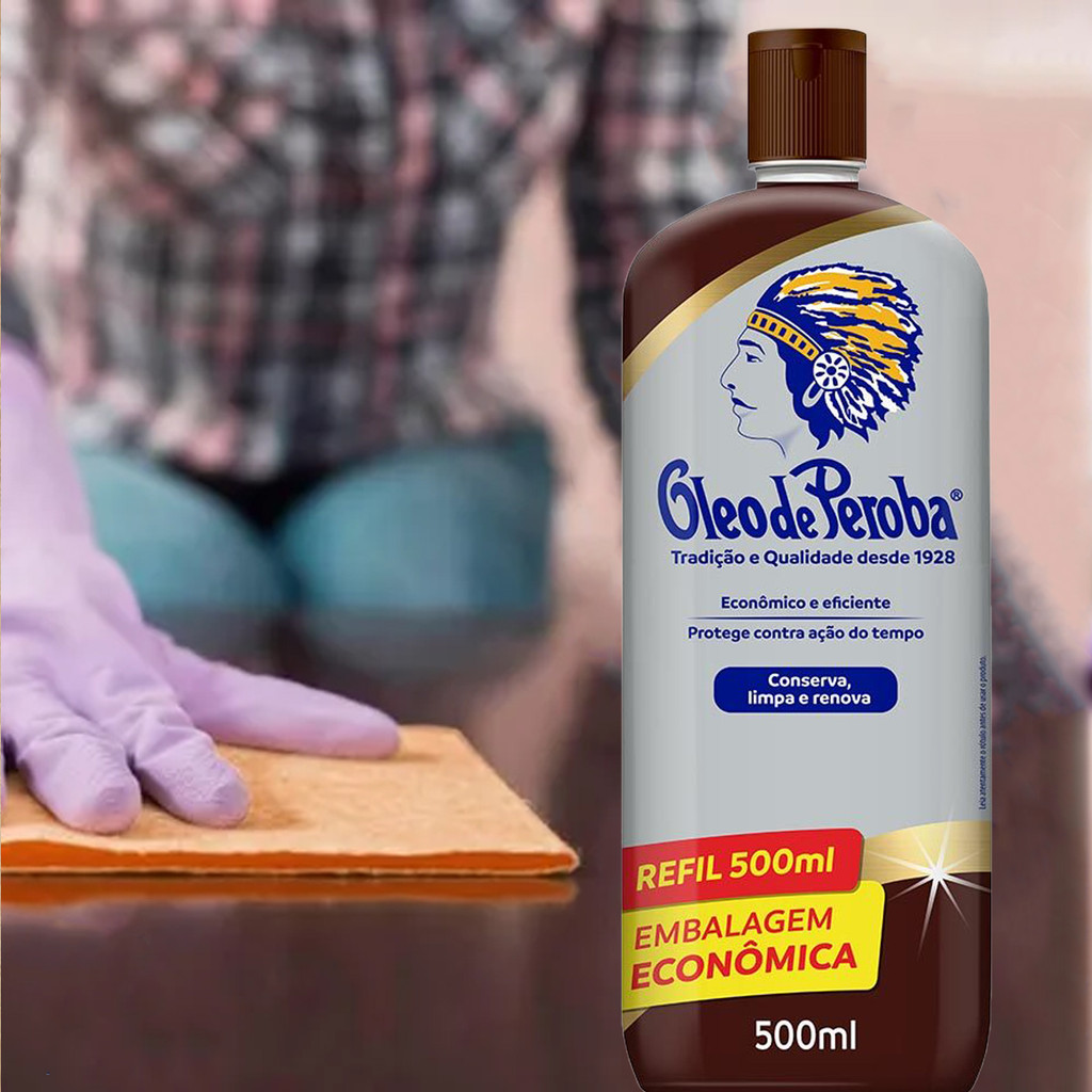 ÓLEO DE PEROBA KING 500ML O Óleo de Peroba King 500ml é a escolha ideal para quem deseja conservar, proteger e dar brilho duradouro a móveis e superfícies de madeira. Sua fórmula tradicional penetra profundamente na madeira, realçando seu aspecto natural e criando uma camada protetora contra o ressecamento e o desgaste do tempo. Perfeito para móveis, portas, rodapés, painéis e objetos de madeira envernizada ou natural, o Óleo de Peroba King garante um acabamento impecável com um brilho uniforme. Diferenciais: Realça a beleza e o brilho natural da madeira Protege contra umidade, poeira e rachaduras Prolonga a vida útil dos móveis Fácil de aplicar e com alto rendimento Modo de usar: Com um pano limpo e seco, aplique o produto em pequenas quantidades sobre a superfície desejada. Espalhe de forma uniforme e, se preferir, finalize com um pano seco para intensificar o brilho.