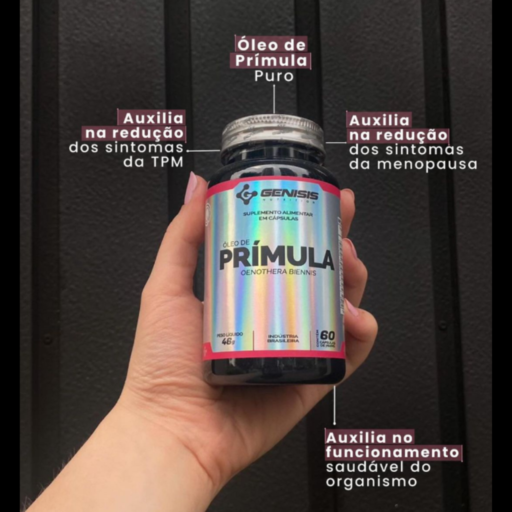 O ÓLEO DE PRÍMULA da GENISIS é um suplemento alimentar composto por óleo de prímula puro, esse composto auxilia na redução dos sintomas da menopausa e da TPM, pois se consumido regularmente atua no controle dos hormônios femininos auxiliando para o funcionamento de um organismo saudável. O ÓLEO DE PRÍMULA da GENISIS, é indicado para todos os indivíduos saudáveis acima de 19 anos de idade. Por estar na apresentação de cápsulas softgel, seu consumo, transporte e armazenamento é prático e fácil, facilitando o dia a dia. APRESENTAÇÃO: Frasco contendo suplemento alimentar na forma de cápsulas softgel. Sem sabor. CONSERVAÇÃO: Conservar este produto ao abrigo de luz, calor e umidade. SUGESTÃO DE CONSUMO: Ingerir 1 (uma) cápsula, 2 (duas) vezes ao dia ou conforme orientação de nutricionista e/ou médico. NÃO EXCEDER A RECOMENDAÇÃO DIÁRIA DE CONSUMO INDICADA NA EMBALAGEM INGREDIENTES: Óleo de Prímula (Oenothera biennis). Composição da Cápsula: Gelatina, água purificada e umectante glicerina. NÃO CONTÉM GLÚTEN. “ALÉRGICOS: PODE CONTER DERIVADOS DE SOJA.” Este produto não substitui uma alimentação equilibrada e seu consumo deve ser orientado por nutricionista ou médico.