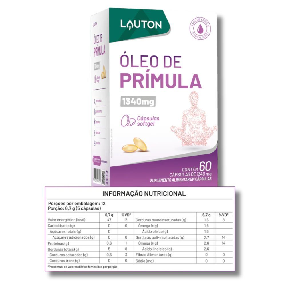 Óleo de Prímula Lauton - 60 Cápsulas de 1340 mg - Cápsulas softgel INGREDIENTES: Óleo de Girassol e Óleo de Prímula. Cápsula: água purificada, gelificante gelatina bovina INS 428 e umectante glicerina INS422. “NÃO CONTÉM GLÚTEN”. APRESENTAÇÃO: 60 cápsulas de 1340mg. RECOMENDAÇÃO DE USO: Tomar 5 cápsulas ao dia, preferencialmente junto às refeições, ou conforme recomendação profissional. CUIDADOS DE CONSERVAÇÃO: “Conservar ao abrigo da luz, calor e umidade excessivos sempre com a embalagem bem fechada”. Após aberto, consumir em até 30 dias. Por conter ingredientes naturais este produto pode sofrer alterações de cor sem afetar a sua qualidade. ALÉRGICOS: PODE CONTER AVELÃS, MACADÂMIA, NOZES, PECÃS, PISTACHE, CASTANHAS, AMENDOIM, AMÊNDOA, CASTANHA-DE-CAJU, CASTANHA-DO-PARÁ, LEITE, SOJA, OVO, CRUSTÁCEOS (KRILL E CARANGUEJO), PEIXES E PINOLI. *A informação de pode conter significa que os ingredientes acima são manipulados na mesma fábrica, mas não há adição direta dos mesmos na formulação do produto. ESTE PRODUTO NÃO É UM MEDICAMENTO. MANTENHA FORA DO ALCANCE DE CRIANÇAS. PRODUTO INDICADO PARA MAIORES DE 19 ANOS. NÃO EXCEDER A RECOMENDAÇÃO DIÁRIA DE CONSUMO INDICADA NA EMBALAGEM. • SoftgelCaps -Cápsula mole de gelatina • Glúten Free - Não contém glúten • Lactose Free - Não contém lactose • Sugar Free - Não contém açúcar ============================================= Óleo de Prímula Lauton - 60 Cápsulas de 1340 mg - Cápsulas softgel - Produto dispensado da obrigatoriedade de registro conforme RDC ANVISA - Pote com 60 cápsulas Softgel