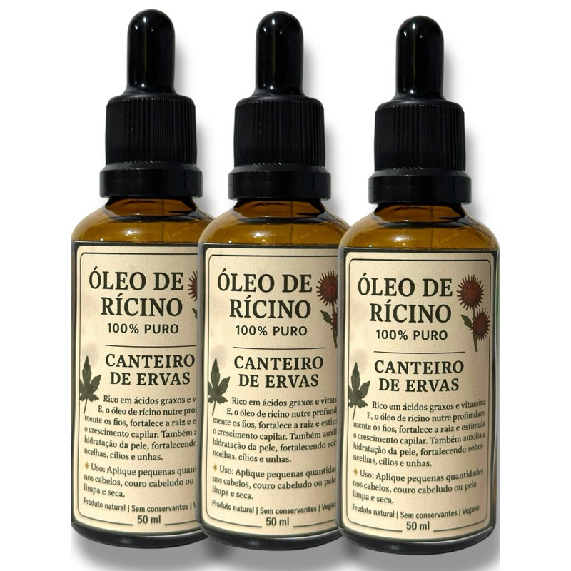 óleo vegetal prensado a frio de rícino contendo 50 ml
