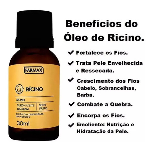 Óleo De Rícino Natural Auxilia No Crescimento 30ml Farmax