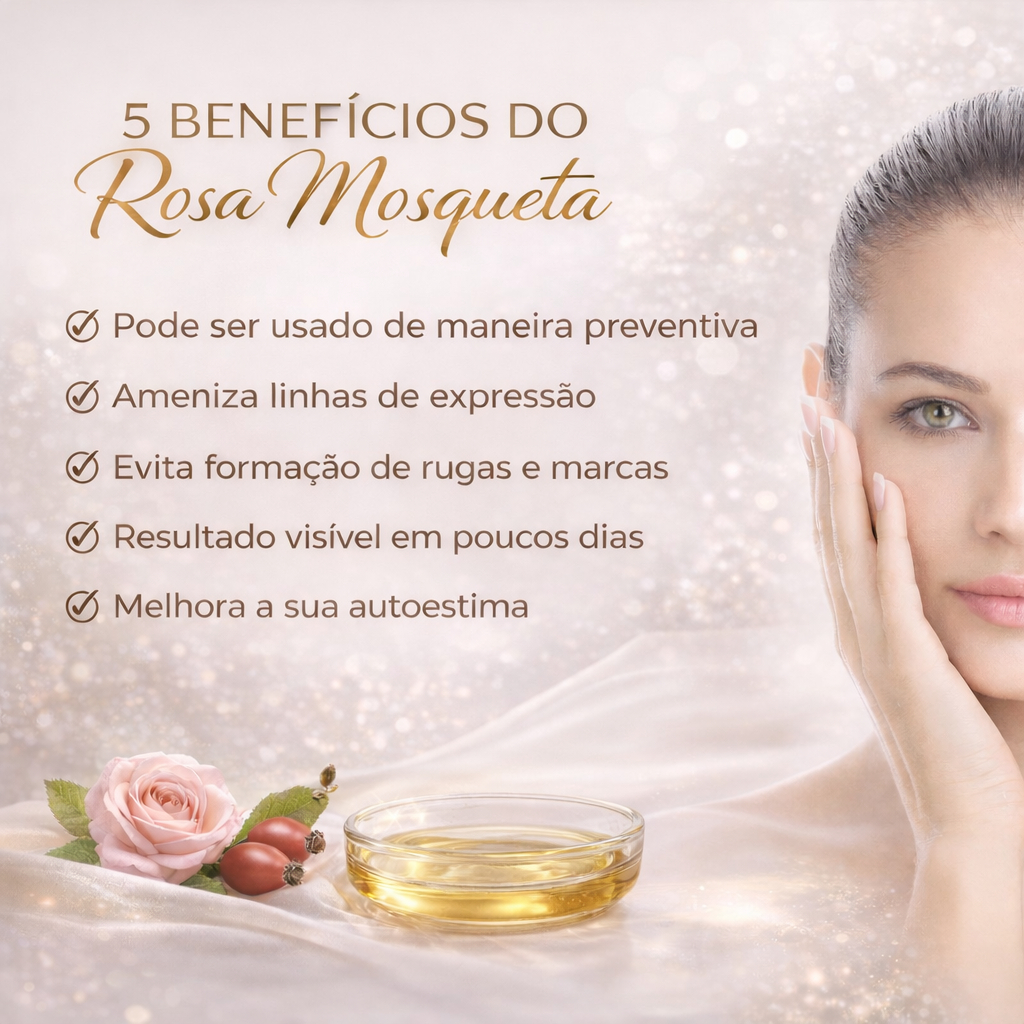 Cansado das rugas e da flacidez que insistem em marcar o seu rosto? Golden Oil Rosa Mosqueta o seu novo aliado para uma pele rejuvenescida, firme e com viço natural! ======================================= Fórmula poderosa para resultados incríveis: ======================================= 1- Rico em Ácido Retinóico (Vitamina A): Estimula a produção de colágeno e elastina, proteínas essenciais para a firmeza e elasticidade da pele, combatendo rugas, linhas de expressão e flacidez. 2- Propriedades Antioxidantes: Neutralizam os radicais livres, responsáveis pelo envelhecimento precoce da pele, prevenindo o aparecimento de novas rugas e linhas de expressão. 3- Hidratação Profunda: Nutre e hidrata intensamente a pele, combatendo o ressecamento e proporcionando maciez, suavidade e elasticidade. ================================== Benefícios que você pode ver e sentir: ================================== 1- Reduz rugas e linhas de expressão, deixando a pele mais lisa e uniforme. 2- Aumenta a firmeza e elasticidade da pele, combatendo a flacidez. 3- Uniformiza o tom da pele e reduz manchas. 4- Deixa a pele mais macia, suave e com viço natural. ============================ Resultados comprovados: ============================ - 92% de usuárias notaram redução na aparência de rugas e linhas de expressão em apenas 8 semanas. - 86% sentiram a pele mais firme e elástica após 4 semanas de uso. - 74% observaram diminuição da flacidez e melhora do contorno facial em 12 semanas. Experimente agora e surpreenda-se com os resultados! ====================================== Por que escolher Golden Oil Rosa Mosqueta? ====================================== 1- Fórmula 100% natural e vegana. 2- Livre de parabenos, corantes e ingredientes artificiais. 3- Dermatologicamente testado e aprovado. 4- Cruelty-free: não testado em animais. ===================== Modo de usar: ===================== Aplique algumas gotas do óleo sobre a pele limpa e seca, massageando suavemente até a completa absorção. Use 2 vezes ao dia, pela manhã e à noite. ============================ Para melhores resultados: ============================ * Use o Golden Oil Rosa Mosqueta em conjunto com o protetor solar durante o dia. * Beba bastante água para manter a pele hidratada. * Alimente-se de forma saudável e equilibrada. * Mantenha uma rotina de cuidados com a pele adequada ao seu tipo de pele. Diga adeus às rugas, à flacidez e olá à pele jovem, radiante e cheia de vida com Golden Oil Rosa Mosqueta! Peça o seu agora mesmo!