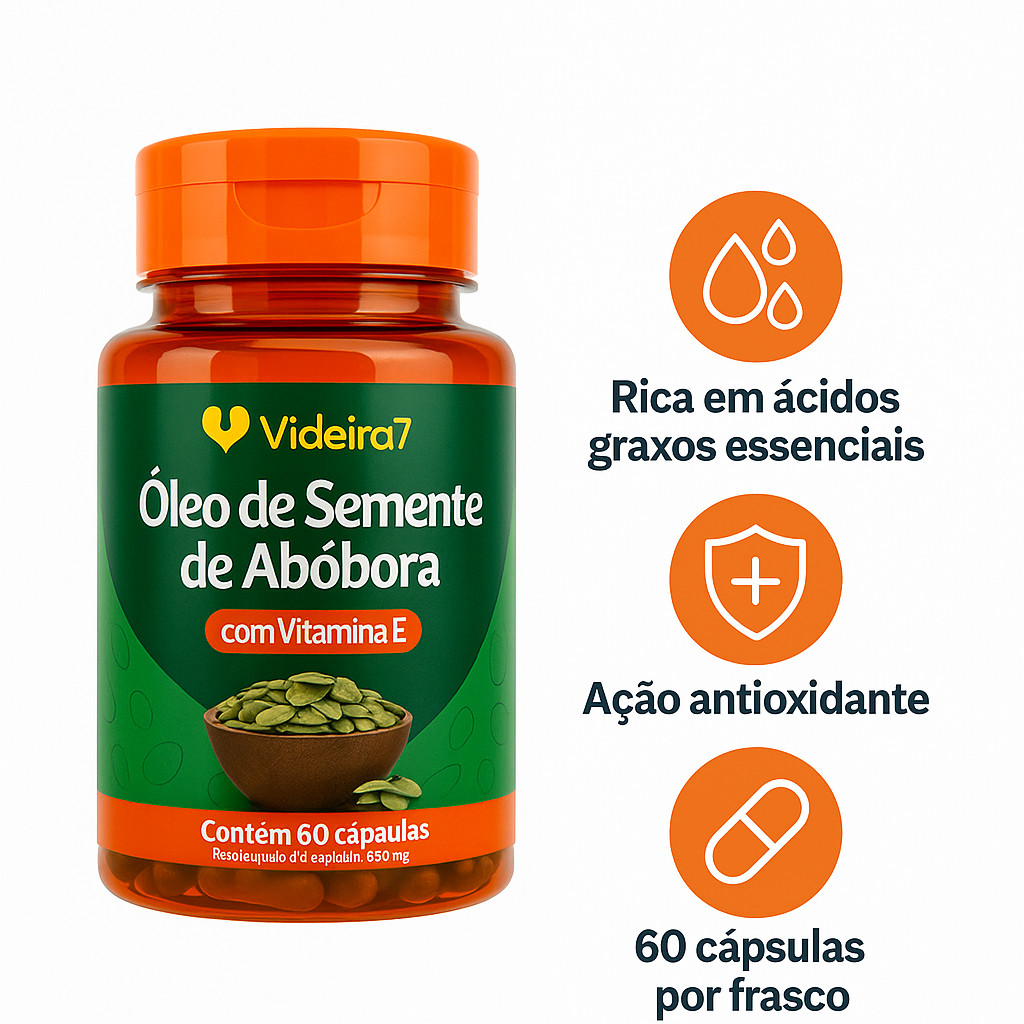 Sobre o produto: O óleo de semente de abóbora contém antioxidantes que atuam contra radicais livres,. Assim, prevenindo o envelhecimento precoce das células e a formação de rugas e manchas na pele. Por fim, promovendo a hidratação e a maciez da mesma. As vitaminas A, C e E auxiliam também na limpeza da pele. Recomendação de Uso: Consumir 02 cápsula por dia Ingredientes: Óleo de semente de abóbora e vitamina E (acetato de DL alfa tocoferol). Composição da cápsula: água purificada, gelificante gelatina bovina INS 428 e umectante glicerina INS 422. NÃO CONTÉM GLÚTEN. Sobre o envio: A PRONTA ENTREGA- ENVIO EM ATÉ 24 HORAS ÚTEIS! DÚVIDAS DE SEMPRE: 1) E se meu produto não chegar? TODOS OS PACOTES SEGUEM COM O PROTOCOLO DE RASTREIO E VOCÊ PODE CONSULTAR DIARIAMENTE PARA VER ONDE ELE ESTA, CASO OCORRA ALGUM SINISTRO A MERCADORIA ESTÁ ASSEGURADA PELO SISTEMA DO MARKETPLACE E VOCÊ RECEBE SEU DINHEIRO DE VOLTA. 2) Qual a validade? VOCÊ IRÁ ENCONTRAR A VALIDADE ASSIM COMO O NÚMERO DO LOTE NA PARTE SUPERIOR DA EMBALAGEM. TRABALHAMOS APENAS COM PRODUTOS FRESCOS, DESSA FORMA VOCÊ RECEBERÁ O PRODUTO COM UMA VALIDADE EXTENSA. DEPENDENDO DO PRODUTO, DE ATÉ 2 ANOS. Ficou com alguma dúvida? Entre em contato com a gente!