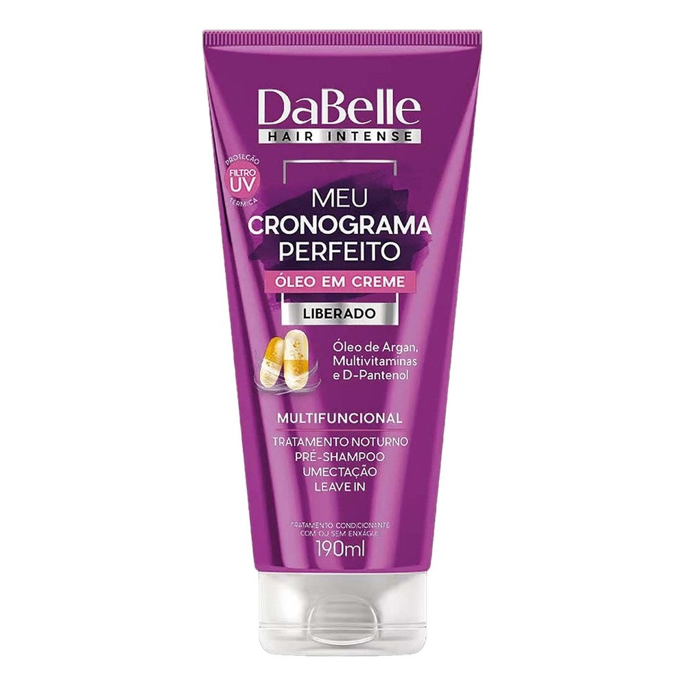 DaBelle Hair - Óleo em Creme 190ml O Óleo em Creme DaBelle Hair é ideal para cabelos ressecados, oferecendo diversas funcionalidades como pré-shampoo, umectação, leave-in modelador e nutrição noturna. Este produto revitaliza os fios, ativa a curvatura e proporciona definição, maciez e brilho. Benefícios: Hidratação intensa, definição, maciez, brilho, proteção térmica, revitalização dos fios e ativação da curvatura. Modo de uso: Fortalecedor Noturno: Aplique do comprimento às pontas antes de dormir. O enxágue ao acordar é opcional. Pré-shampoo: Nos cabelos úmidos, aplique do comprimento às pontas. Deixe agir por 5 minutos, enxágue e prossiga com sua rotina. Umectação: Enluve os cabelos secos mecha por mecha. Deixe agir por pelo menos 30 minutos e siga sua rotina. Leave-in: Nos cabelos úmidos, distribua uniformemente para desembaraçar e finalizar. Protetor Térmico: Aplique antes de usar ferramentas de calor como secador e chapinha. Filtro UV: Aplique antes de expor os cabelos ao sol, praia, piscina e reaplique após mergulhar. Resultado: Cabelos super saudáveis, macios e cheios de brilho. Linha Óleo em Creme - Abacate Nutritivo - Cachos da Onda - Cronograma Perfeito - Resgata Fios