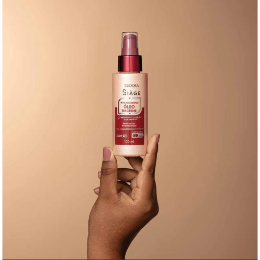 Óleo em Creme Eudora Siàge Nutri Acid.ComplexO que é e para que serve?O Eudora Siàge Nutri Acid.Complex Finalizador Óleo em Creme 100ml é um inovador produto de beleza, projetado especificamente para tratar cabelos ressecados e elásticos. Com uma textura cremosa e altamente condicionante, este finalizador combina a potência nutritiva dos óleos com uma fórmula revolucionária que atua desde o primeiro uso. Ideal para quem busca revitalizar os fios, ele proporciona uma nutrição intensa e duradoura, além de proteção térmica e contra raios UVA e UVB.Quais os benefícios do Eudora Siàge Nutri Acid.Complex Finalizador Óleo em Creme? Nutrição duradoura que penetra gradativamente Restauração da hidratação natural da fibra capilar Proteção térmica até 230ºC Proteção contra raios UVA e UVB Cabelos mais macios e brilhantes Redução do frizz Menos quebra dos fios Ativos: Ácido Itacônico:, Reconstrói as pontes capilares; Ácido Cítrico; Penetra no córtex para restaurar a estrutura molecular dos fios; Ácido Lático: Regula o pH do fio, selando o tratamento de nutrição; Blend de Óleos: Proporciona uma reposição nutritiva essencial, evitando o ressecamento. Indicação:O Eudora Siàge Nutri Acid.Complex Finalizador Óleo em Creme é indicado para pessoas com cabelos ressecados e elásticos que desejam restaurar a saúde e a beleza dos fios com um tratamento nutritivo e inovador. É ideal para quem busca produtos veganos e cruelty-free.Modo de uso: Aplique o Óleo em Creme Eudora Siàge Nutri Acid.Complex nos cabelos úmidos ou secos, distribuindo uniformemente ao longo dos fios. Não enxágue. Finalize como desejar. O Eudora Siàge Nutri Acid.Complex Finalizador Óleo em Creme é adequado para todos os tipos de cabelo?Este produto é especialmente indicado para cabelos ressecados e elásticos. No entanto, pode ser utilizado em qualquer tipo de cabelo que necessite de nutrição e proteção térmica.Posso usar o Eudora Siàge Nutri Acid.Complex Finalizador Óleo em Creme diariamente?Sim, o produto pode ser utilizado diariamente como parte da sua rotina de cuidados capilares, contribuindo para manter os fios nutridos e protegidos.