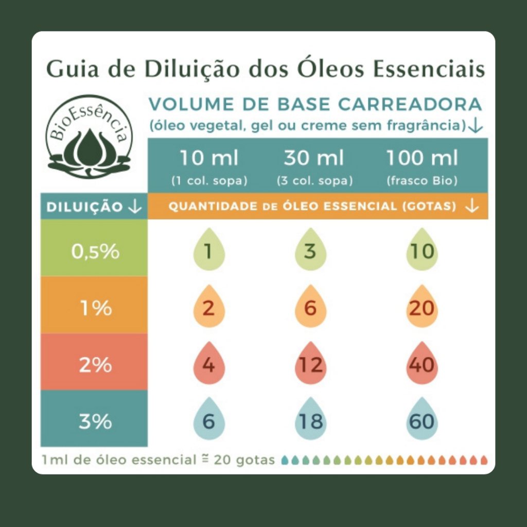 Óleo essencial Puro e Natural - BioEssência Trabalhamos somente com PRODUTOS ORIGINAIS. MODO DE USO -No difusor de Porcelana: Adicione 10 gotas de água e 5 de óleo essencial no Aromatizador Elétrico. -Difusor Ultrassônico sem Filtro: Adicione de 5 a 10 gotas de óleo essencial para 400ml de água. -No corpo: Pode ser aplicado em massagens, banhos, compressas, fricções, inalações, escalda-pés. Sempre diluir em óleo carreador (óleo vegetal, creme neutro, argila) para passar na pele. PRECAUÇÕES -Não usar puro sobre a pele. Não se expor ao sol após o uso na pele. CARACTERÍSTICAS GERAIS -100% Puro e Natural -Frasco em vidro âmbar com gotejador -Vegano, não testado em animais -Com registro na Anvisa Validade: 2 anos Dúvidas chamar no chat responderemos o mais rápido possível.